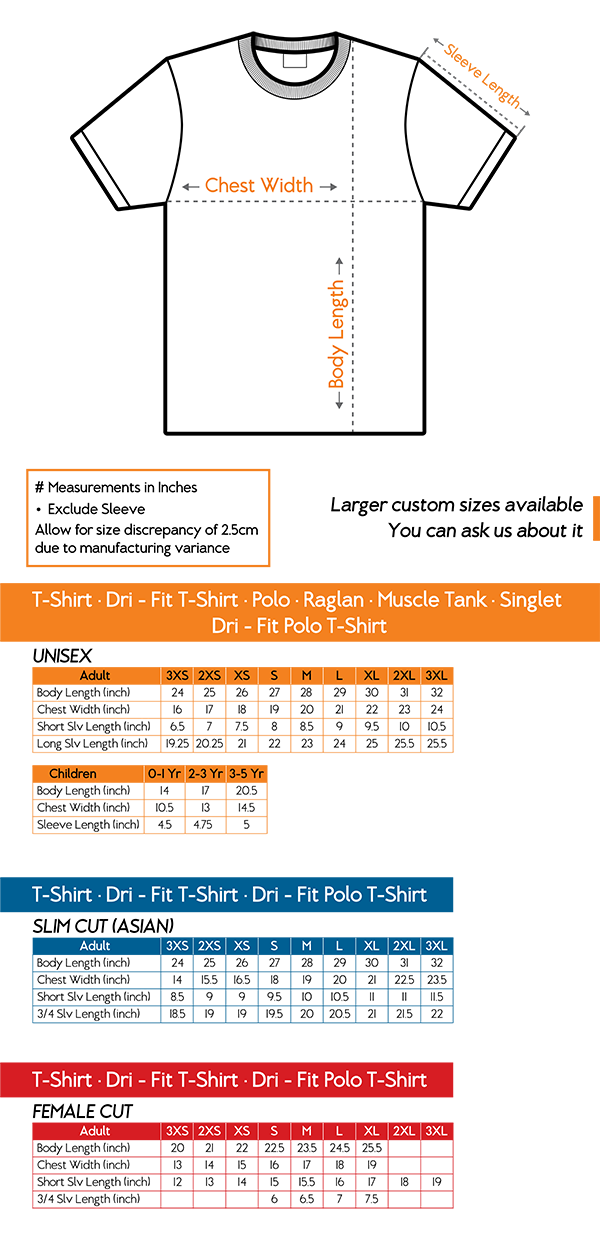 See ColorsOur range of sizes are wide, from 3XS to 3XL, on top of children's sizes